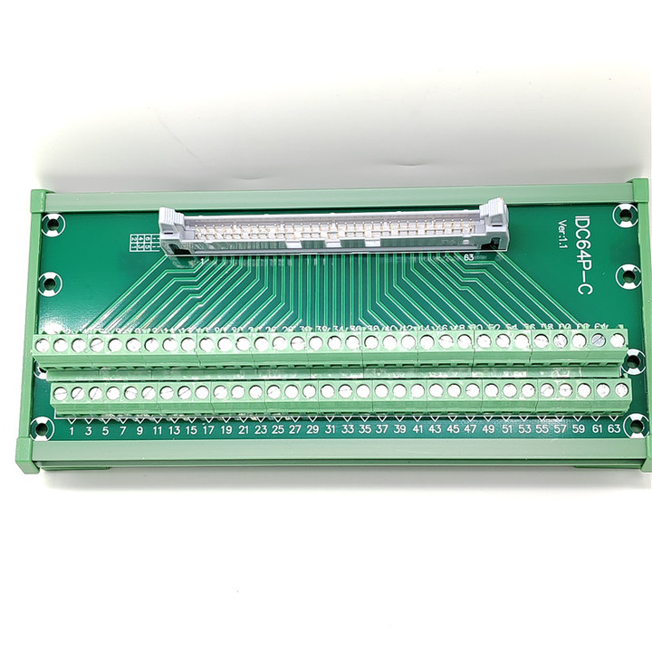 IDC64P Breakout Board PLC Relay Adapter Electric Cable Male Connector 2x32 Pins Terminal Block DIN Rail Mounting